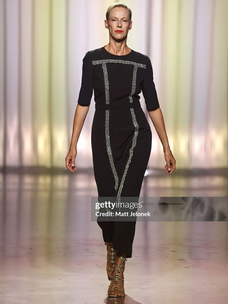BERLIN, GERMANY - JANUARY 31: A model walks the runway at the COLLECTIVEFOUR Marcel Ostertag fashion show during Berlin Fashion Week Autumn/Winter 2025 at Uber Eats Music Hall on January 31, 2025 in Berlin, Germany. (Photo by Sebastian Reuter/Getty Images for Marcel Ostertag)
